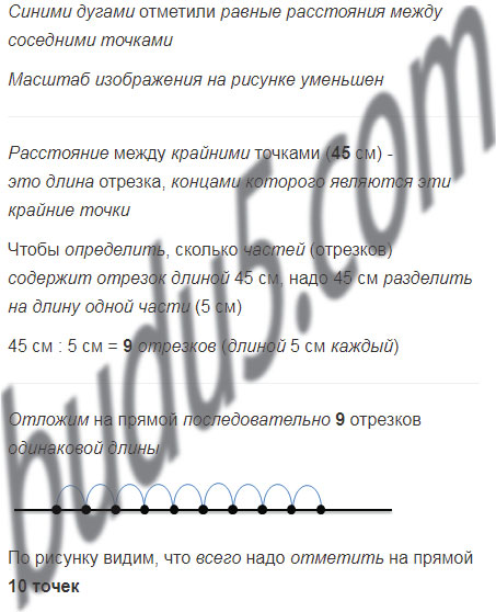 На прямой отметили точки так, что расстояние между любыми двумя соседними точками равно 5 см, а между крайними точками - 45 см. Сколько точек отмечено на прямой?