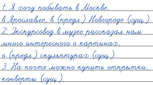 1. Я хочу побывать в Москве, в Ярославле, ... . 2. Экскурсовод в музее рассказал нам много интересного о картинах, ... . 3. На почте можно купить открытки, ... .