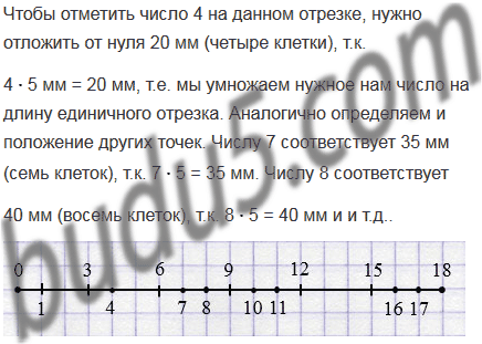 Начертите отрезок длиной 9 см. Над одним концом отрезка напишите 0, а над другим 18. Разделите отрезок на шесть равных частей. Назовите числа, которые соответствуют каждому штриху деления. Отметьте на полученной шкале числа 4, 7, 8, 10, 11, 16, 17.