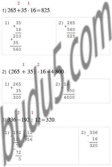 1) 265 + 3516; 3) 336 - 192 : 12;