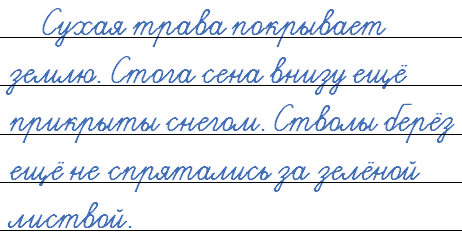 Вставим пропущенные буквы в слова: сухая трава, стога сена, конец зимы, стволы берёз.