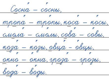 Гора, сосна, тропа, коса, смола, сова, коза, овца, окно, гроза, вода.