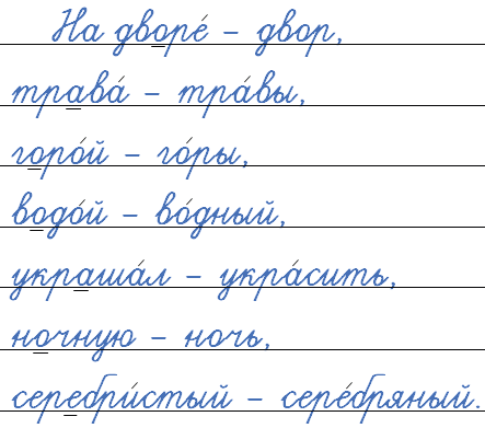 1. На дв..ре тр..ва, на тр..ве дрова. 2. На дв..ре г..рой, а в избе в..дой. 3. Укр..шал н..чную синь сер..бристый апельсин. А прошла неделька только – от него осталась долька.