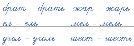 Спишите пары слов. Сравните их по звучанию и значению. Какими звуками они различаются? Мягкий знак (ь) подчеркните.