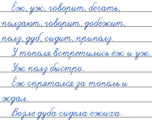 Ёж (ежи), уж (ужи), полз (ползать), дуб (дубы).
