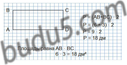 2. Найди площадь и периметр листа бумаги прямоугольной формы, если его длина 6 дм, а ширина 3 дм.