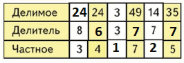 1 столбик - случаи табличного деления.