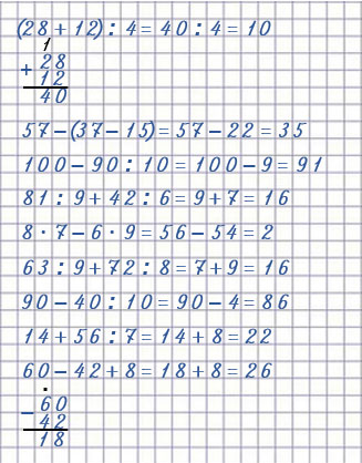 (28 + 12) : 4 = 10 1) 28 + 12 = 40 2) 40 : 4 = 10 |