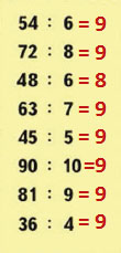 | 72 : 8 • 3 | 54 - 24 : 3 |