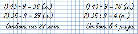 2) Папе и сыну вместе 45 лет. Сыну 9 лет. Во сколько раз сын моложе папы?
