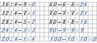 Задание 1: 48 : 8 + 3 = 9 64 : 8 + 3 = 11 24 : 8 + 3 = 6 40 : 8 + 3 = 8 72 : 8 + 3 = 12 |