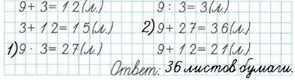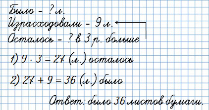 102. После того, как дети израсходовали 9 листов цветной бумаги, у них осталось в 3 раза больше листов, чем они израсходовали. Сколько листов цветной бумаги было сначала?
