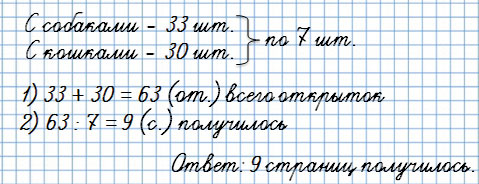 У Вали есть 33 открытки с изображением собак и 30 открыток с изображением кошек. Все открытки она разложила в альбом, по