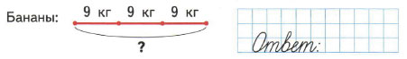 В магазин привезли 3 ящика бананов, по 9 кг каждый. Сколько килограммов бананов в трёх ящиках?