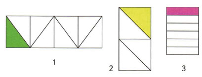 2) Найди площадь каждой закрашенной части в прямоугольниках с номерами 2 и 3.