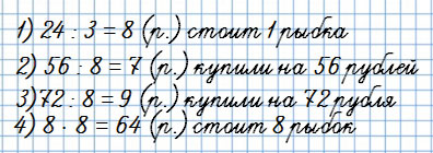 182. За 3 одинаковые аквариумные рыбки заплатили 24 р. Сколько таких рыбок можно купить на 56 р., на 72 р.? Сколько будут стоить 8 таких рыбок?