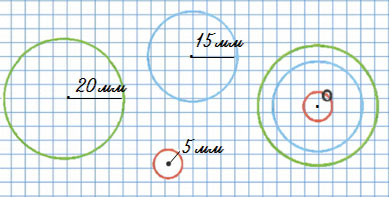 192. Измерь радиус каждой окружности и начерти 3 окружности таких же радиусов, но с одним центром в точке O.