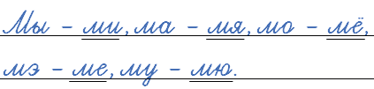 Мы - ми, ма - мя, мо - мё, мэ - ме, му - мю.