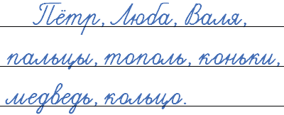 П..тр, Л..ба, Вал.., пал..цы, топол.., кон..ки, м..двед.., кол..цо.