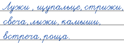 Луж..‚ щ..пальце, стриж.., свеч, лыж.., камыш.., встреч.., рощ.. .