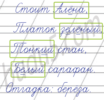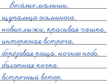 Весёлые малыш.., щ..пальца осьминога, новые лыж.., красивая ч..шка, интересная встреч.., берёзовая рощ.., ноч..ное небо, болотная коч..ка, встреч..ный ветер.