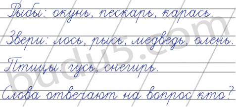 Задание 5. Прочитай слова. Как разделить их на три группы? На какой вопрос отвечают все эти слова?