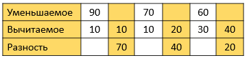 Обратите внимание, при вычитании в столбик, ставим точку над десятками, чтобы не забыть о том, что 1 десяток (1 сотню) забрали, если единицы (десятки) уменьшаемого меньше единиц (десятков) вычитаемого.