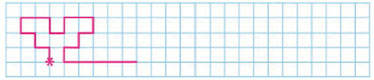 Черчу узор: 1 клеточка вверх, 1 клеточка влево, 1 клеточка вверх, 1 клеточка влево, 1 клеточка вверх, 2 клеточки вправо, 1 клеточка вниз, 1 клеточка вправо, 1 клеточка вверх, 2 клеточки вправо, 1 клеточка вниз, 1 клеточка влево, 1 клеточка вниз, 1 клеточка влево, 1 клеточка вниз, 5 клеточек вправо.