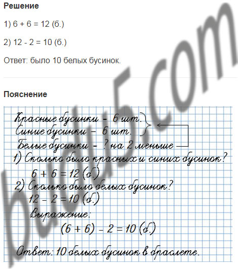 2. В браслете было б красных бусинок и столько же синих, а белых бусинок было на 2 меньше, чем красных и синих вместе. Сколько белых бусинок было в браслете?