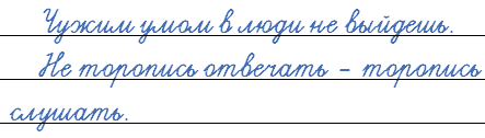 Объясним смысл пословиц. Чужим умом в люди не выйдешь. (Если хочешь многого достичь и добиться, надо много знать, уметь думать самостоятельно) Не торопись отвечать - торопись слушать. (Прежде, чем что-то говорить, необходимо внимательно выслушать собеседника и хорошо подумать)
