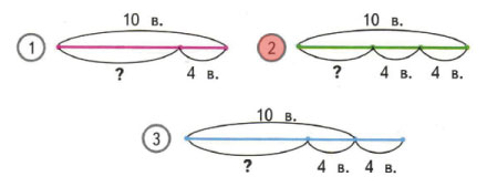 Выбери схематический чертёж к задаче и раскрась его номер. Реши задачу.