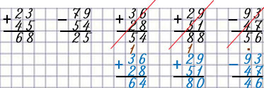 Складываю десятки: 3 + 2 = 5 и ещё 1 десяток, который запоминали, получается 6.