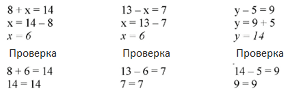 При решении уравнений можно выполнять проверку, чтобы проверить правильность вычислений, для этого нужно в исходное уравнение вместо буквы подставить число, которое мы получили.