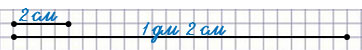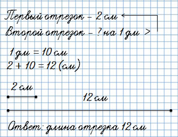 Начерти первый отрезок длиной 2 см. Начерти второй отрезок, чтобы он был длиннее первого на 1 дм.