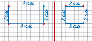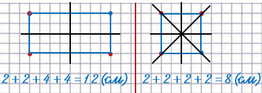 Чтобы найти периметры полученных многоугольников, находим сумму длин сторон этих многоугольников.