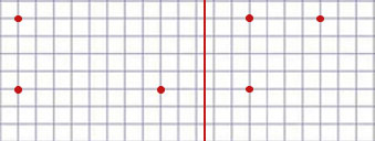 На каждом рисунке отметь ещё по одной точке так, чтобы каждые 4 точки стали вершинами прямоугольника. Начерти эти прямоугольники. Проведи все оси симметрии в каждом из них.