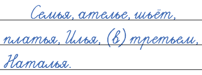 У меня большая семья. Мама работает в ателье. Она шьёт красивые платья. Папа собирает на заводе автомашины. Старший брат Илья учится в университете. Я учусь в третьем классе, а сестра Наталья заканчивает школу.
