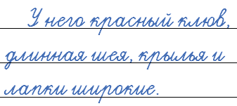Гусь - это птица. Она плавает. У него ... клюв, ... шея, крылья и ... лапки.