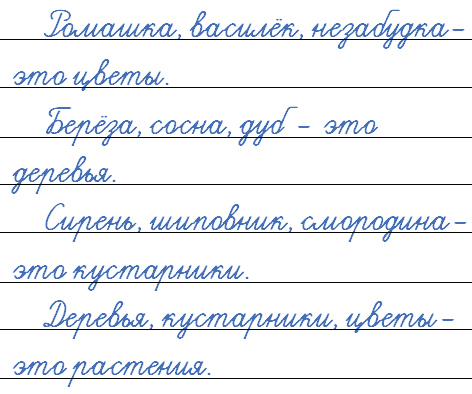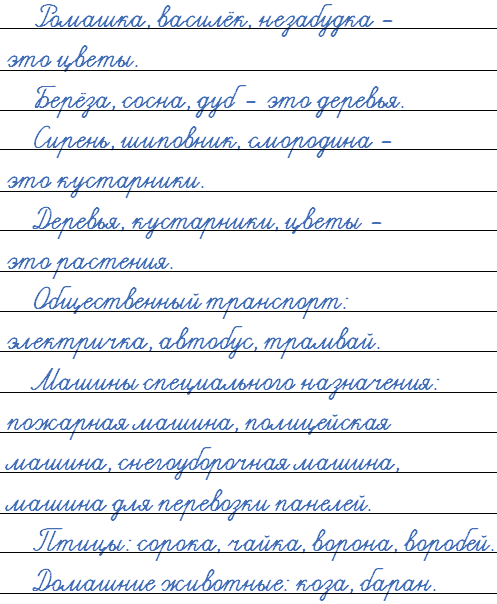 Каким одним словом можно назвать слова в каждой строчке? Запишите предложения.