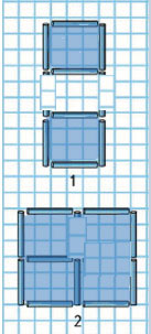 7. В каждой фигуре убери 2 палочки так, чтобы осталось 2 квадрата.