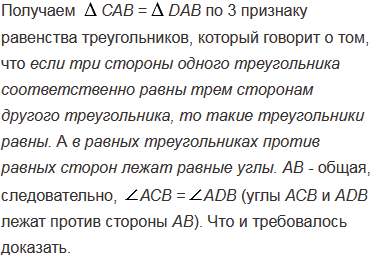 На рисунке 96 АС = АD, АВСD. Докажите, что ВС = ВD и АСВ =АDВ.