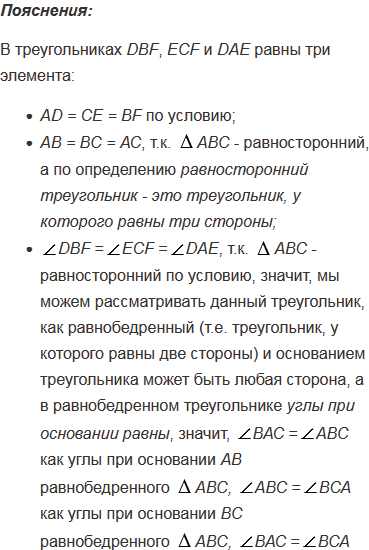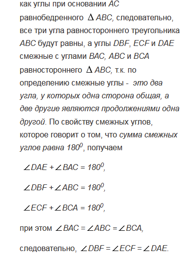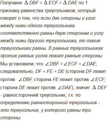 Стороны равностороннего треугольника АВС продолжены, как показано на рисунке 100, на равные отрезки АD, СЕ, ВF. Докажите, что треугольник DEF - равносторонний.