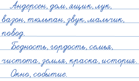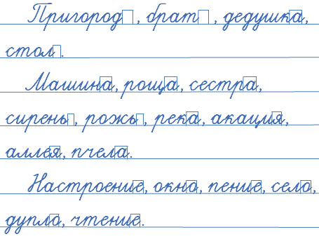 Машина, настроение, роща, пригород, сестра, брат, дедушка, сирень, окно, стол, рожь, река, пение, акация, аллея, село, дупло, пчела, чтение.
