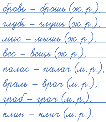 Образец. Клюв — ключ (м. р.), нос — ночь (ж. р.).