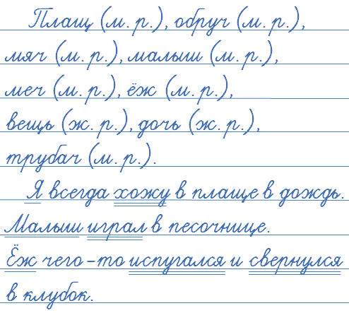 малыш (м. р.), меч (м. р.), ёж (м. р.),