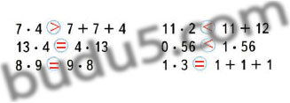 Чтобы поставить знаки в равенствах и неравенствах, нужно решить левую и правую часть и сравнить результаты.
