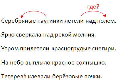 Серебряные (какие?) паутинки летели (где?) над полем.