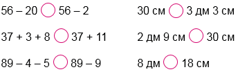 | 56 - 20 < 56 - 2 | 30 см < 3 дм 3 см |