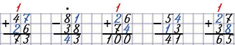 при вычитании единиц на месте единиц в разности должно получится число 7. Но нет такого числа, при вычитании которого из 1 получится 7, поэтому при вычитании единиц нужно занять один десяток (над десятками ставлю точку, чтобы не забыть о том, что десятков стало на один меньше). Теперь нужно подобать такое число, при вычитании которого из 11 получится 7, это число 4, так как 11 - 4 = 7.