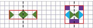 Дорисуй и раскрась фигуры так, чтобы рисунки стали симметричными.